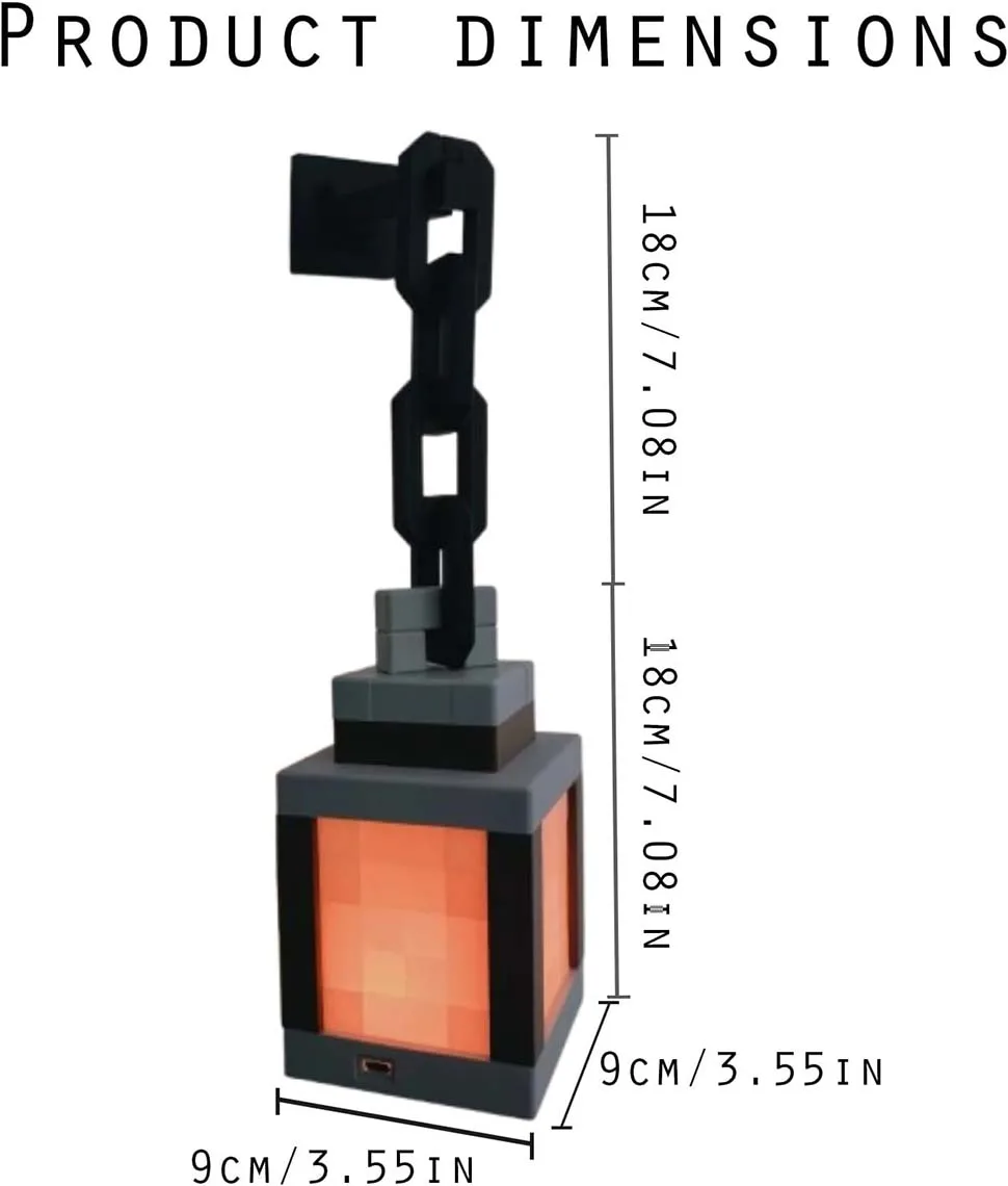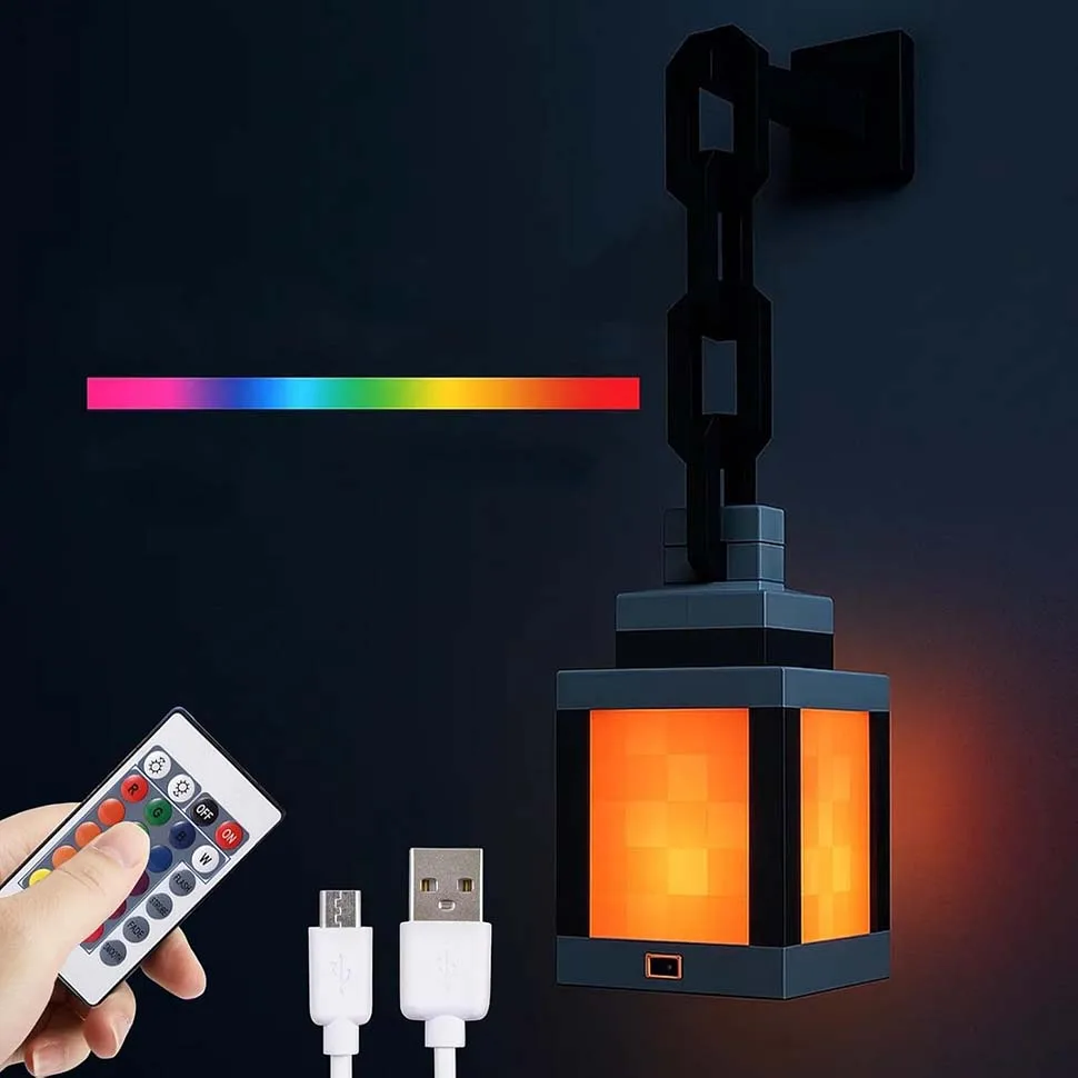 Pixelated Lantern Night Light -16-Color Led Wall Mood Night Light W Touch Switch&Remote Control-Rechargeable Night Lamp Mountable Table Light, Costume Cosplay Nightstand Lamp for Room Decor for Boys